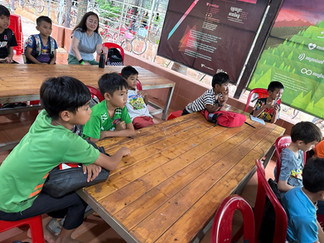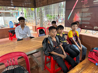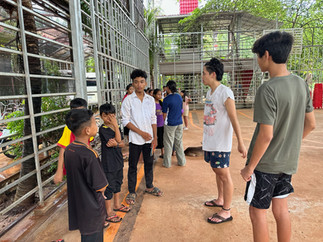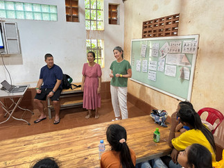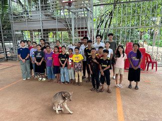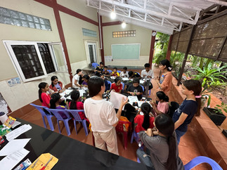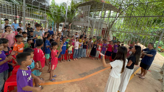 Wednesday morning, we drove 3 hours south of Phnom Penh to the Kampot Province to the village of Anghkjeay. Normally, the village is hotter than the city, but we were blessed with cooler than normal weather. Upon arrival, we quickly ate lunch (homemade Cambodian curry, delicious!) and prepared for ministry activities. The school kids typically break from 12 pm - 1:30 pm, and they make their way to Luke and Sohka's home for English class, every MWF. They've really built their home to support ministry in the village with a ministry room, outdoor classroom, covered basketball court, along with their family living space. For the afternoon activity, we started with a time of singing and body worship, then moved into a time of games, crafts, and sharing of the gospel. Jimin and Hayes covered the Roman Road with the children.
